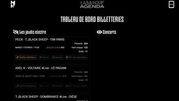 En coordination avec l’agenda des spectacles (concerts, soirées électro, théâtre, cirque...) du Kabarouf nous avons créé un système de billetterie complet qui comprend :