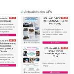 • nous avons créé un outil de "News" pour permettre aux gestionnaires d’UFA de pouvoir publier des actualités, celles-ci étant visibles sur la page générale des news du site. A l’aide d’une interface simple les webmestres peuvent modérer la publication de ces news ou les faire afficher sur la page d’accueil du site.