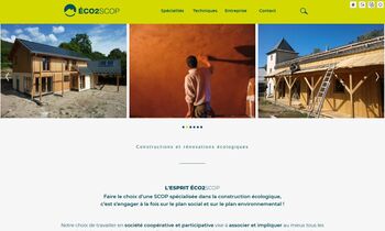 Eco2scop est une entreprise sous statut de SCOP spécialisée dans la construction et rénovation écologique. En partenariat avec Jérôme Bouquemont pour l’infographie, nous avons fait une refonte complète complète de leur site internet, "vitrine" principale de leur activité et pièce maitresse de leur communication.